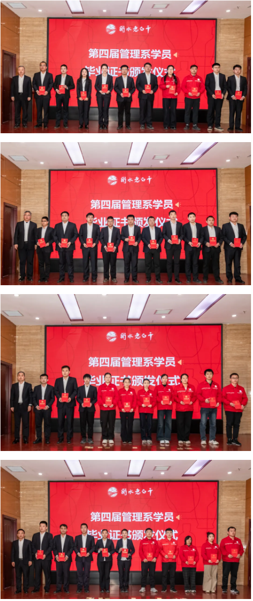 董事长在祝贺第四届管理系和大师工匠班学员圆满结业、祝愿第五届管理系学员学业顺遂的同时,希望大家珍惜衡水老白干大学这一学习平台,立足本职岗位,秉持求真务实的态度,在持续钻研生产、质量、营销等管理艺术的过程中,不断提升个人修养与职业精神,在平凡的工作中创造出不平凡的业绩。