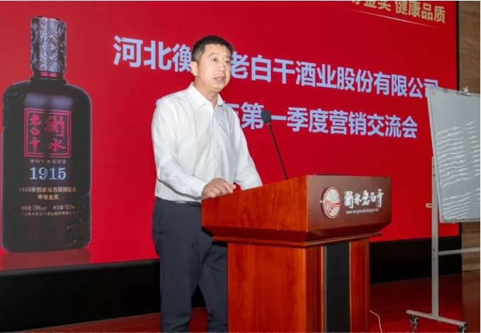 会上,河北衡水老白干酒业股份有限公司副总经理兼营销公司总经理贺延昭就一季度衡水老白干在衡水、石家庄、唐山市场亮点与问题进行总结发言。