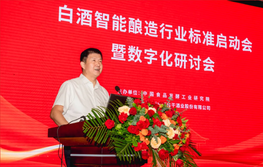 中国食品发酵工业研究院有限公司党委书记、总经理郭新光首先发表致辞,他从国家产业战略的高度,深刻阐述了推动白酒行业智能化升级的必要性与紧迫性,强调了标准先行对于行业健康发展的重要意义。