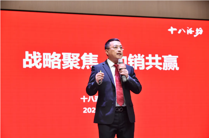 十八酒坊事业部总经理张永乐作《十八酒坊事业部营销规划报告》,提出“组织提效、渠道升级、用户绑定、品牌破圈、闭环管理”五大策略支点。张总强调,要通过“从定位到共情”的品牌传播升级,将十八酒坊“中国舒适生活方式倡导者”的品牌主张深植人心,在新传播时代实现品牌跃迁。
