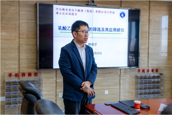 2025年11月25日,衡水老白干与天津科技大学联合培养的在站博士后林良才出站报告会在酒都大厦1308会议室举行。