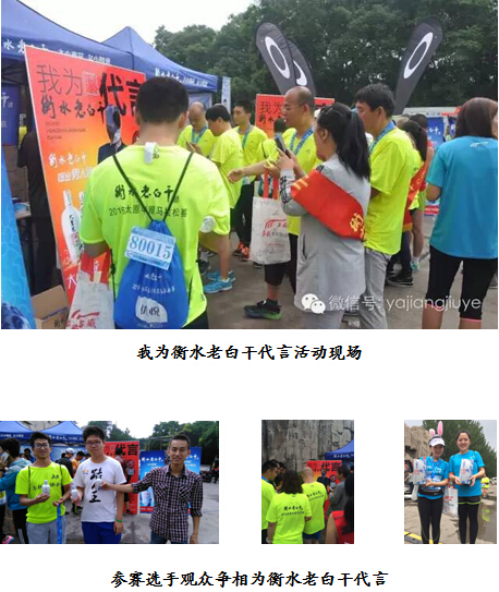 本次活动由高波局长和马天锋经理为太原国际马拉松倒计时揭牌,并在7:50和8:00准时为女子组和男子组鸣枪开跑。赛会现场精心布置了产品展示区,咨询了解的人群络绎不绝,扫描二维码和“我为衡水老白干代言”板吸引了众多运动员和现场观众参与互动,提升了我们产品的宣传力,活跃了现场气氛。衡水老白干赞助本次赛事是近几年来最重要的一次广告宣传,对宣传衡水老白干起到了重要的作用,对终端消费者的品牌认知度有直接的提升,更重要的是,通过本次赛事直接使我们与赛事组委会及太原市体育协会有了更深入的了解,也是通过本次赛事了解协会及其背后资源,为衡水老白干在其协会内部推广乃至太原市整体发展起到了至关重要的作用,本次赞助该赛事也直接开启太原衡水老白干品牌推广的第一步,在产品知名度提升的同时,也间接的提高了经销商的积极性,为太原市场衡水老白干发展起到了积极作用。衡水老白干追求卓越品质,提倡健康饮酒,“敢担当、负责任”的男人味,与“永不放弃”的马拉松精神,以及共同追求健康、品质生活的态度,是衡水老白干与太原马拉松的共识,通过本次赛事宣传衡水老白干,用马拉松精神诠释衡水老白干男人味的品牌概念,让衡水老白干产品更深入人心。