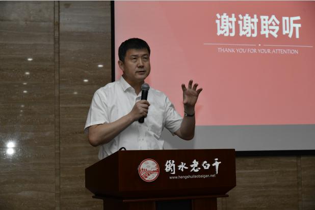 衡水老白干营销公司营销总监庞润茂首先发言。庞总阐述了2021年衡水老白干营销工作的整体思路,重点对一季度的工作进行汇报,通过“精准布局、头部引领、次高封王”三大核心策略的系统推进,实现了一季度营销工作的快速发展。